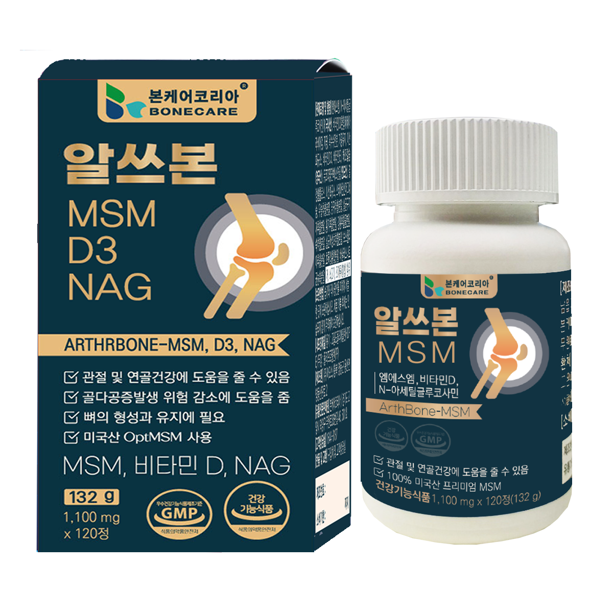 본케어 복합관절영양제 알쓰본 MSM D3 NAG 콘드로이친 아쿠아미네랄 120정 (1개월)..